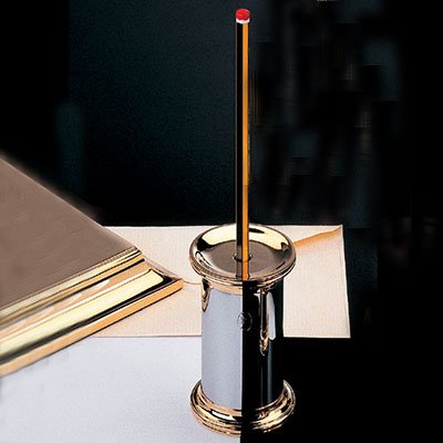 Silver Hand Held Pencil Sharpener by El Casco. This fine El Casco item is hand layered in silver chrome after a rigorous and meticulous hand polishing process. The result is a fine and lustrous item that displays style and class. Imported from Spain, where it is manufactured in the historical Basque Country, this silver hand held pencil sharpeners is made for an executive desktop. Trimmed in 23kt Gold, and a mirrored chrome finish give it a modern, upscale look. The hand held pencil sharpener is an executive item through and through. Authenticity certificates are included with this hand crafted item. Top unscrews for easy emptying. Size: 3 1/2" x 2 1/2"