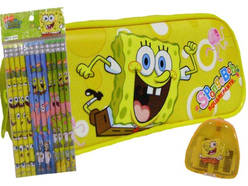 New Spongebob Yellow Pencil Case + Decorated Pencils & Sharpener Feature